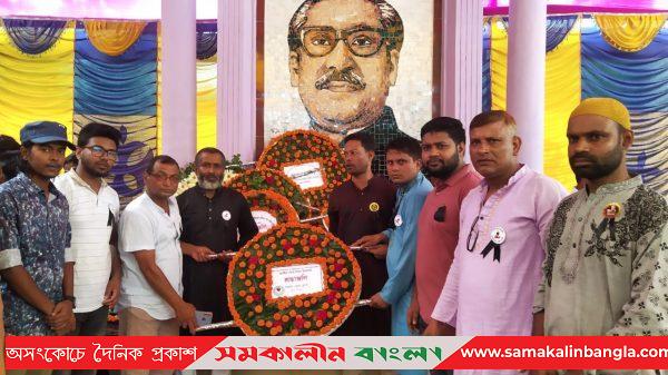 সারা দেশের ন্যায় শেরপুরের নকলায় জাতীয় শোক দিবস ও বঙ্গবন্ধু’র ৪৭তম শাহাদৎ বার্ষিকী যথাযোগ্য মর্যাদায় পালন উপলক্ষে উপজেলা ছাত্র লীগের উদ্যোগে বাঙালি জাতির পিতা বঙ্গবন্ধু শেখ মুজিবুর রহমান-এঁর প্রতিকৃতিতে পুষ্পার্ঘ্য