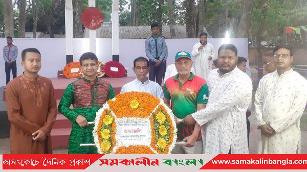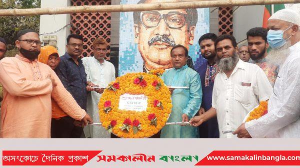 মহান স্বাধীনতা ও জাতীয় দিবস-২০২২ যথাযোগ্য মর্যাদায় পালন উপলক্ষে শেরপুর জেলার নকলায় বাংলাদেশ আওয়ামী যুবলীগের উদ্যোগে বাঙালি জাতির পিতা বঙ্গবন্ধু শেখ মুজিবুর রহমান-এঁর প্রতিকৃতিতে ও শহীদদের স্মরণে শহীদ মিনারে পুষ্পস্তবক