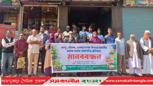শেরপুরে আলু, পেঁয়াজ ও ভেবাজ্যতেলসহ নিত্যপ্রয়োজনীয় দ্রব্যের দামের উধ্বর্বগতির প্রতিবাদে মানববন্ধন কর্মসূচি পালন করেছে ভোক্তা অধিকার সংগঠন কনজ্যুমারস এসোসিয়শন অব বাংলাদেশ (ক্যাব)। শনিবার (৭ ডিসেম্বর) জেলা শহরের খরমপুর মোড়ে এ