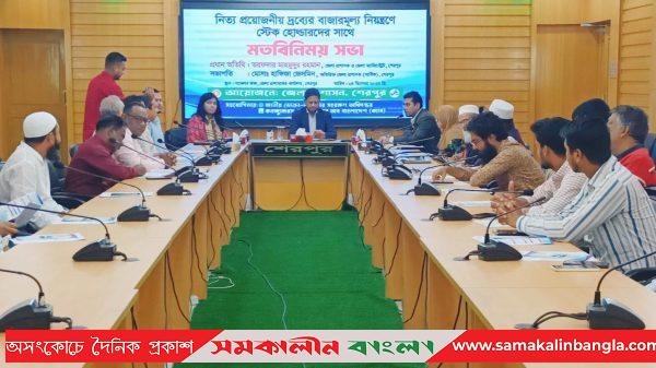 শেরপুরে নিত্যপ্রয়োজনীয় দ্রব্যের বাজারমূল্য নিয়ন্ত্রনে ব্যবসায়ী নেতাদের সাথে মতবিনিময় সভা অনুষ্ঠিত হয়েছে। আজ বুধবার (৪ ডিসেম্বর) দুপুরে জেলা প্রশাসক কার্যালয়ের সম্মেলন কক্ষ রজনীগন্ধায় ওই মত বিনিময় সভা অনুষ্ঠিত হয়। সভায়