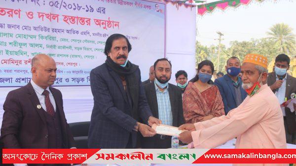 শেরপুর জেলার সদর উপজেলার শেরপুর-বয়রা পরানপুর মৌজার কানাশাখেলা-অষ্টমীতলা আঞ্চলিক সড়কের যথাযথমান ও প্রশস্থতায় উন্নীতকরণ শীর্ষক প্রকল্পের আওতায় ক্ষতিগ্রস্থ ৩১টি পরিবারের জমির মালিকদের কাছে ক্ষতিপূরণের ৩৫টি চেক হস্তান্তর করা হয়েছে। বৃহস্পতিবার