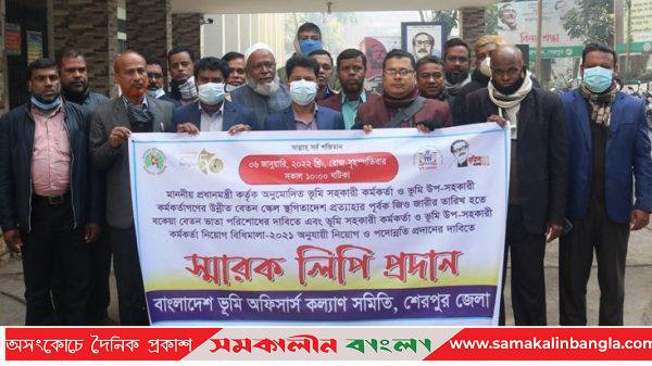 ৬ দফা দাবী বাস্তবায়নের লক্ষে সারাদেশের ন্যায় শেরপুরে বাংলাদেশ ভূমি অফিসার্স কল্যাণ সমিতি জেলা শাখার আয়োজনে মানববন্ধন কর্মসূচি পালন করার পাশাপাশি জেলা প্রশাসকের মাধ্যমে ভূমি মন্ত্রণালয়ের সচিব বরাবরে এক স্মারকলিপি