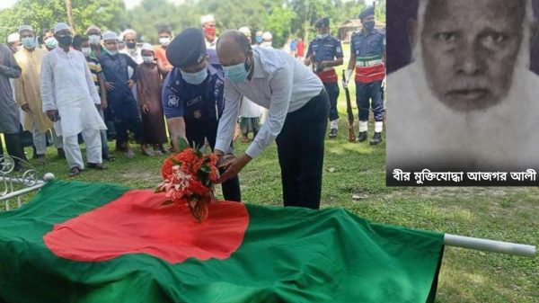 শেরপুর জেলার নকলা উপজেলার বীর মুক্তিযোদ্ধা মো. আজগর আলীর মরদেহ রাষ্ট্রীয় মর্যাদায় দাফন করা হয়েছে। বুধবার (২৮ জুলাই) বিকাল ৩টার সময় উপজেলার পাঠাকাটা ইউনিয়নের জাঙ্গীরার পাড় সরকারি প্রাথমিক বিদ্যালয় মাঠে