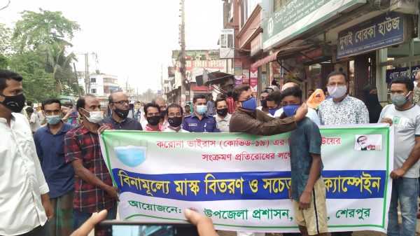 শেরপুরের নকলা উপজেলায় করোনা ভাইরাস (কোভিড-১৯) এর দ্বিতীয় ঢেউ মোকাবেলায় সংক্রমণ প্রতিরোধে বিনামূল্যে মাস্ক বিতরণ ও সচেতনতা ক্যাম্পেইন অনুষ্ঠিত হয়েছে। ১১ মে মঙ্গলবার বিকেলে পৌরশহরের বিভিন্ন মহল্লা ও সড়ক ঘুরে