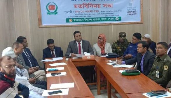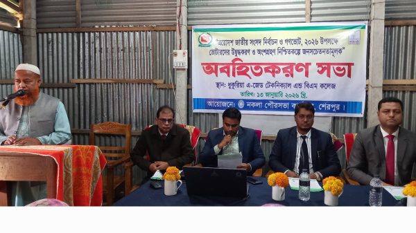 নকলায় সংসদ নির্বাচন ও গণভোট উপলক্ষে জনসচেতনতামূলক অবহিতকরণ সভা