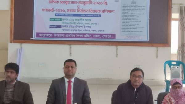 শেরপুরের নকলায় মানসম্মত প্রাথমিক শিক্ষা বাস্তবায়নে করণীয় বিষয়ে প্রাথমিক বিদ্যালয়ের প্রধান শিক্ষকদের মাসিক সমন্বয় সভা এবং আসন্ন গণভোট-২০২৬ ও জাতীয় সংসদ নির্বাচন বিষয়ক প্রশিক্ষণ অনুষ্ঠিত হয়েছে। মঙ্গলবার উপজেলা পরিষদ মিলনায়তনে