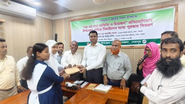 শেরপুরের নকলায় জুলাই গণঅভ্যুত্থান বর্ষপূর্তি পালন উপলক্ষে “২৪ এর রঙে গ্রাফিতি ও চিত্রাঙ্কন” প্রতিযোগিতায় উপজেলা পর্যায়ে বিজয়ীদের মাঝে পুরষ্কার বিতরণ করা হয়েছে। এ উপলক্ষে সোমবার বিকেলে উপজেলা পরিষদ মিলনায়তনে সংক্ষিপ্ত