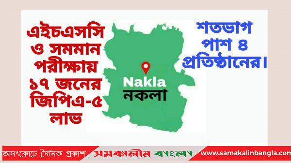 শেরপুরের নকলায় এইচএসসি, আলিম ও এইচএসসি ভোকেশনাল পরীক্ষায় উপজেলার উচ্চ মাধ্যমিক পরীক্ষায় মোট ১৭ জন পরীক্ষার্থী জিপিএ-৫ পেয়েছে। শতভাগ সফলতা অর্জন করেছে ৪ প্রতিষ্ঠানের শিক্ষার্থীরা। তথ্য মতে, উপজেলার উচ্চ মাধ্যমিক
