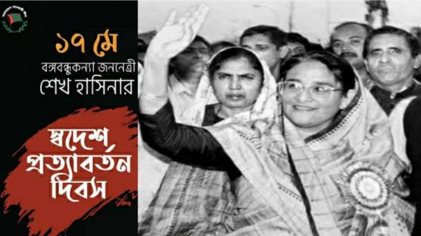 ১৭ মে সোমবার প্রধানমন্ত্রী শেখ হাসিনার ৪১ তম স্বদেশ প্রত্যাবর্তন দিবস। দীর্ঘ নির্বাসনের পর ১৯৮১ সালের এই দিনে স্বাধীন বাংলার মাটিতে ফিরে আসেন আওয়ামী লীগ সভানেত্রী। দিবসটি উপলক্ষে আওয়ামী লীগসহ